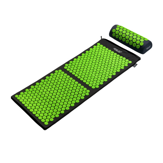 sada podložky + akupresurní polštář SPORTVIDA. Podložka spolu s přídavným akupresurním polštářem s hroty je ideální pro potřeby těch, kteří hledají relaxaci a uvolnění. Lze ji používat denně po dobu několika až několika desítek minut. Leh na zádech umožňuje snížit svalové napětí a stres. Díky mnoha masážním bodům na podložce pocítíte ukl