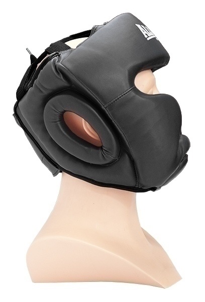 Sparingová helma s ochranou líc a brady. Pro lepší přizpůsobení velikosti má zapínání na suchý zip a vázání na šňůrku.