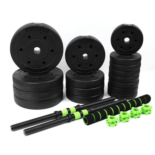 Set činek + kettlebell Sada 30 kg činek, ze kterých lze sestavit činku a kettlebell. Skvělá možnost pro lidi, kteří chtějí trénovat doma s omezeným prostorem. Sada byla navržena tak, aby vám poskytla maximální využití, které činky a kettlebell nabízejí. Nyní můžete svoji postavu formovat cvičením doma pomocí různých náčiní a možností r