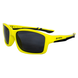 Žluté dětské sluneční brýle značky Laceto ORISA s černými detaily, které se hodí jak na sport, tak na běžné nošení. Jejich skla jsou kouřová. Kategorie podle stupně protisluneční ochrany je na třetí úrovni a použité filtry jsou 100? UVA,UVB a UVC.
