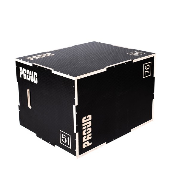 PROUD WOODEN BOX je dřevěný box se třemi výškovými nastaveními - 50, 60 a 70 cm - v závislosti na tréninku. Krabice byla zkonstruována pro bezpečný a efektivní plyometrický trénink na jakékoli úrovni dovedností. Vnitřek bedny byl vyztužen dalšími příčníky, díky čemuž byl produkt trvanlivější. Box je potažený protiskluzovým povrchem.