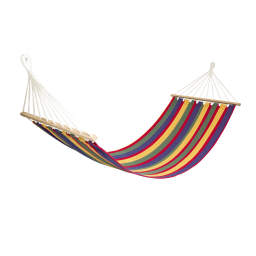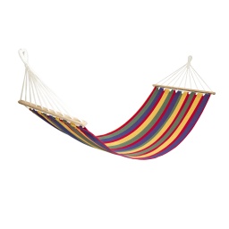 Vícebarevná houpací síť typu hamaky o rozměrech 200x80 cm s maximální nosností 120 kg.