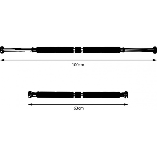 Univerzální roztahovací hrazda do dveří, kterou si můžete upravit v rozměrech 63-100cm v závislosti na šířce Vašich dveří. Pro lepší úchop je hrazda vybavena speciální protiskluzovou pěnou v kombinaci černo červené barvy. Hrazda je vyrobena z kvalitní chromované oceli. Díky lehké instalace Vám její instalace nezabere déle než tři minuty.