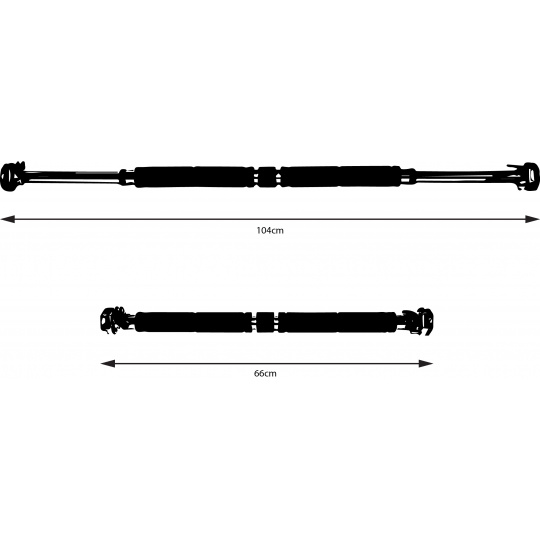 Roztahovací hrazda je vyrobena z prvotřídní nerezové oceli pokryté lesklým chromovým povrchem. Produkt je ideální, když není dostatek místa pro domácí posilovnu v plné velikosti. Velký rozsah nastavení délky v rozmezí 65 - 103 cm vám umožní snadno najít místo pro instalaci hrazdy.