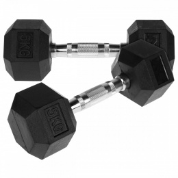 Šestihranná pevná pogumovaná činka. Neobvyklý tvar činky zajistí, že se po odložení činka nepohybuje. To významně ovlivňuje pohodlí mezi sériemi cvičení.