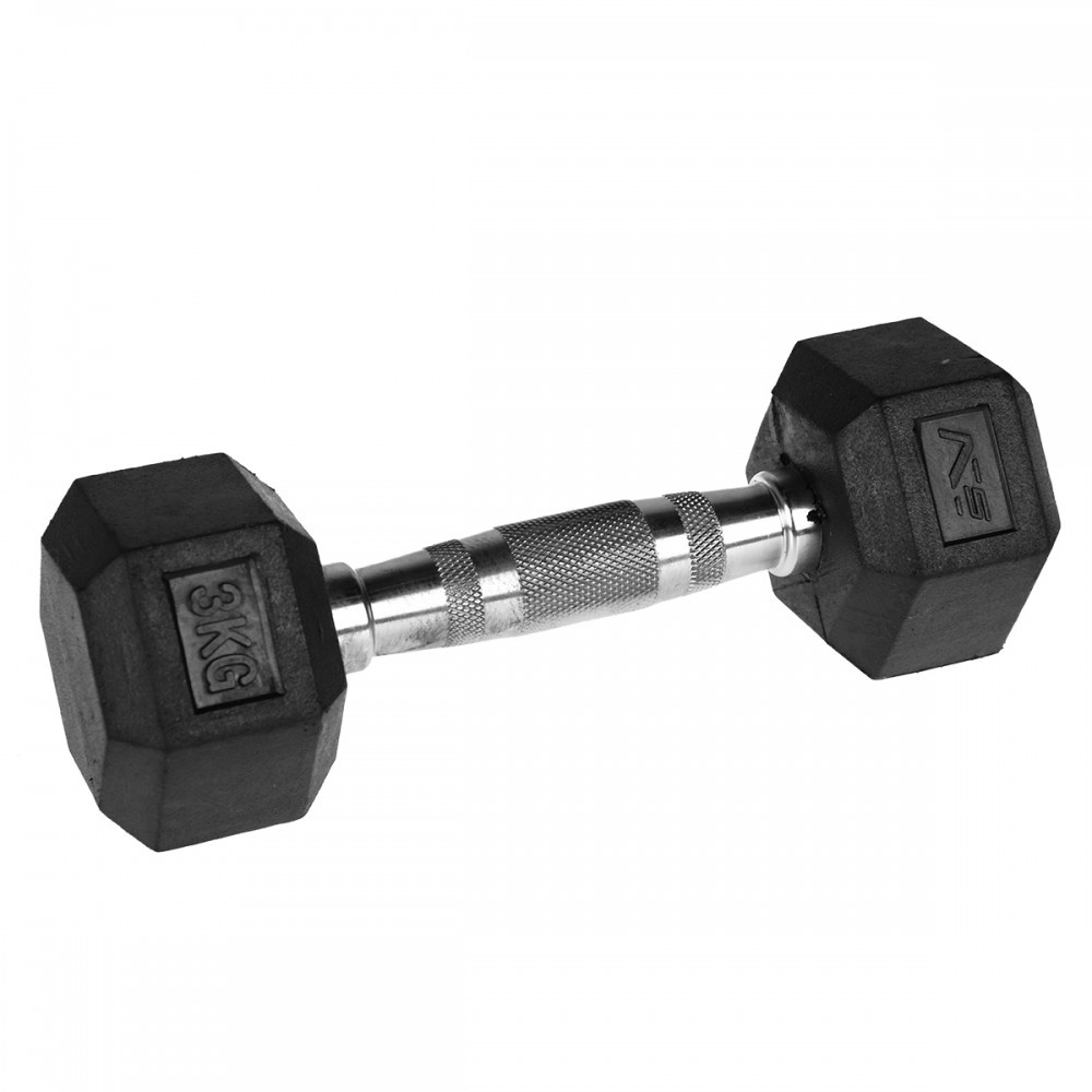 Šestihranná pevná pogumovaná činka. Neobvyklý tvar činky zajistí, že se po odložení činka nepohybuje. To významně ovlivňuje pohodlí mezi sériemi cvičení.