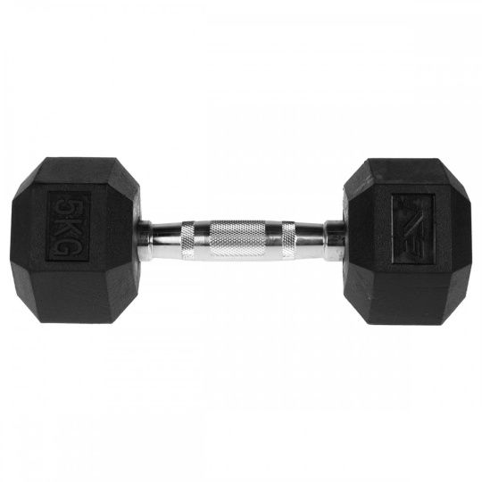 Šestihranná pevná pogumovaná činka. Neobvyklý tvar činky zajistí, že se po odložení činka nepohybuje. To významně ovlivňuje pohodlí mezi sériemi cvičení.