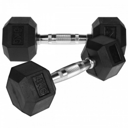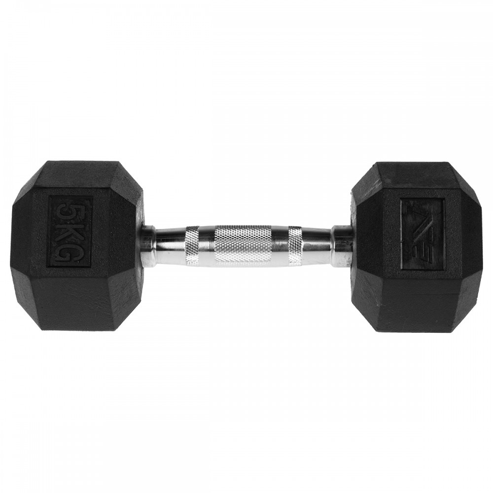 Šestihranná pevná pogumovaná činka. Neobvyklý tvar činky zajistí, že se po odložení činka nepohybuje. To významně ovlivňuje pohodlí mezi sériemi cvičení.