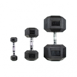 Pevná pogumovaná šestihranná činka. Neobvyklá forma činky zaručuje, že se po odložení nepohybuje. To významně ovlivňuje pohodlí při cvičení. Část pro uchopení je protiskluzová a tím poskytuje pohodlí při práci a téměř úplně eliminuje šanci vyklouznutí z ruky.