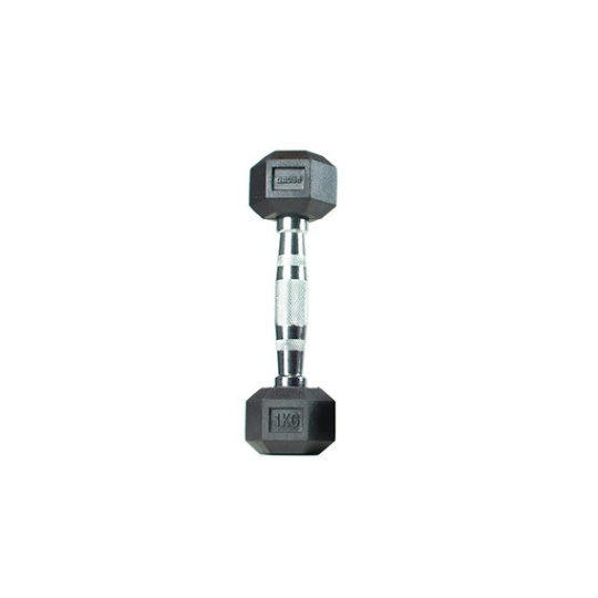 Pevná pogumovaná šestihranná činka. Neobvyklá forma činky zaručuje, že se po odložení nepohybuje. To významně ovlivňuje pohodlí při cvičení. Část pro uchopení je protiskluzová a tím poskytuje pohodlí při práci a téměř úplně eliminuje šanci vyklouznutí z ruky.
