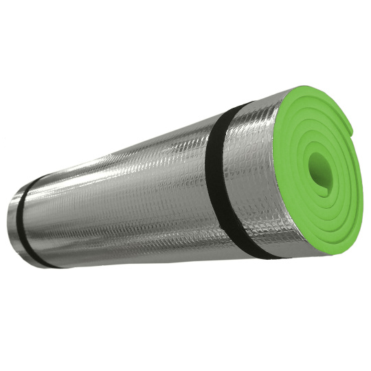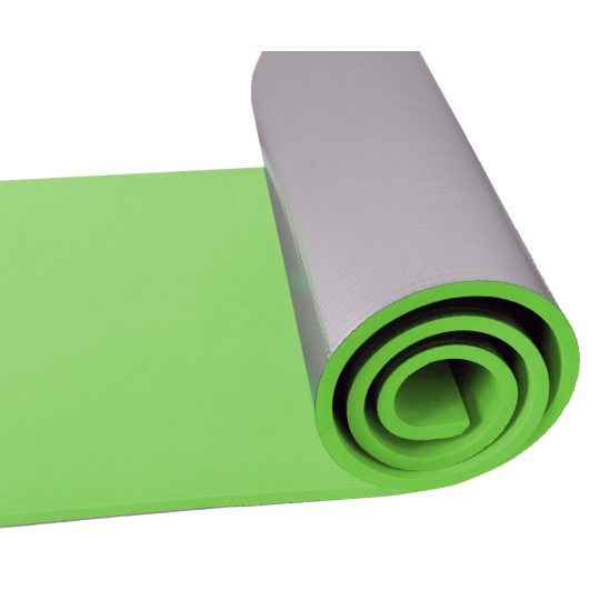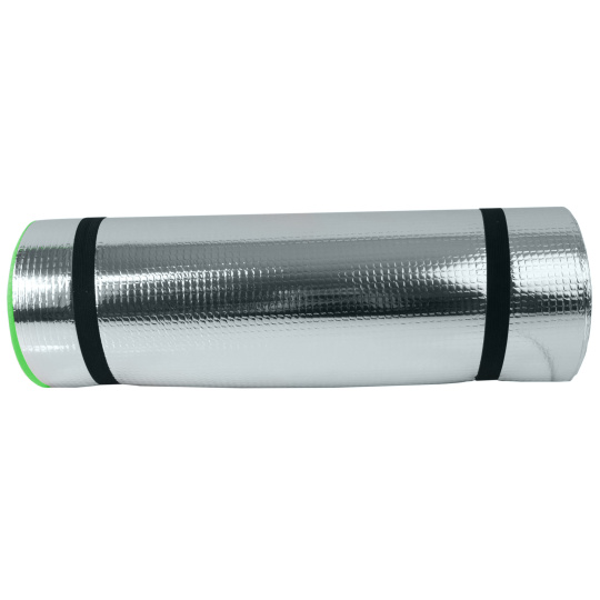 Karimatka s hladkým povrchem a spodní stranou z ALU fólie. Karimatka je vhodná pro camping, turistiku nebo jako podložka u vody či na piknik. Kombinace pěnového EVA materiálu a hliníkové vrstvy zaručuje pohodlí a zároveň chrání před chladem a vlhkem. Karimatku lze jednoduše srolovat a zajistit pomocí gumiček. Je lehká a snadno přenosná.