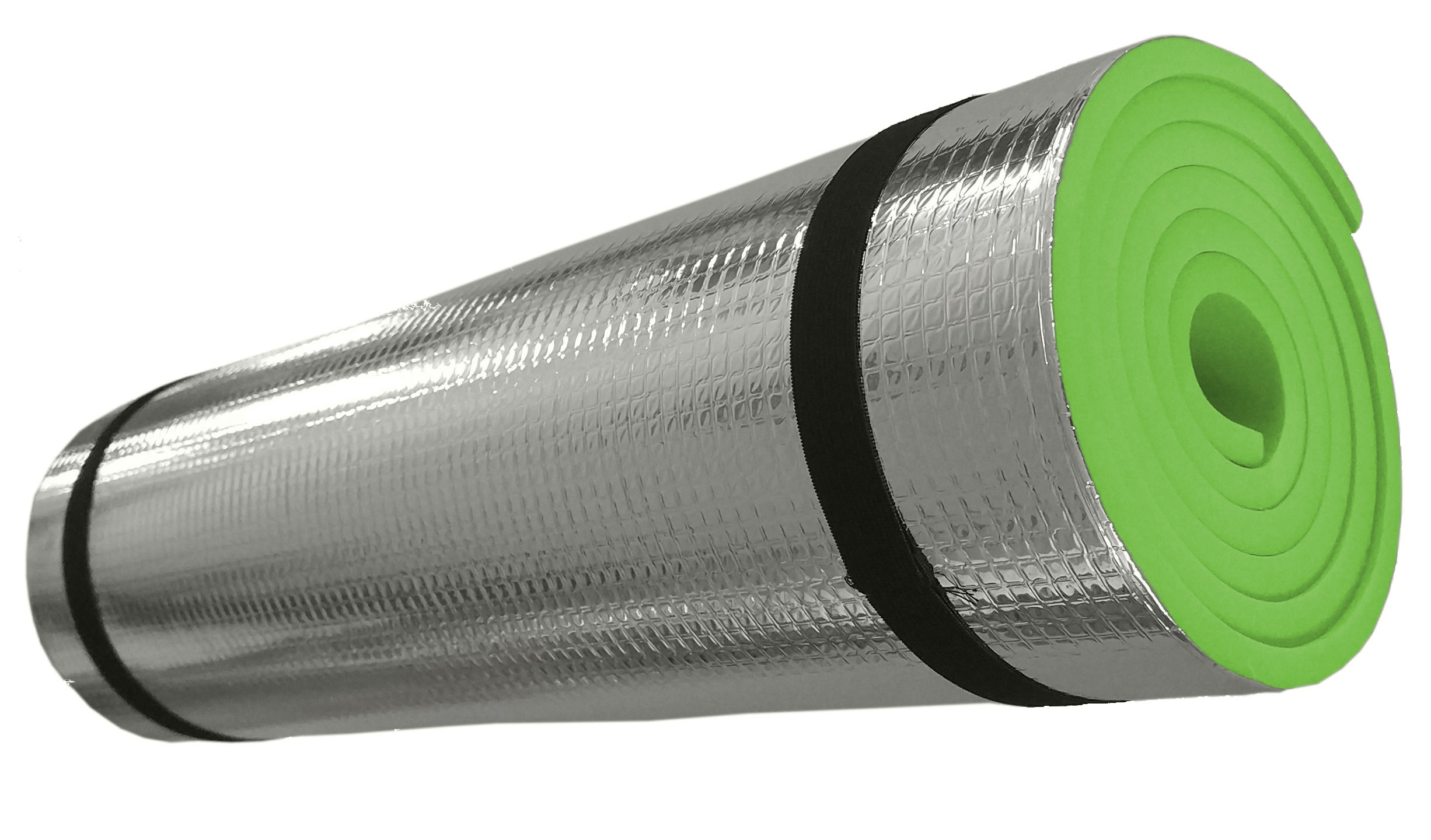 Karimatka s hladkým povrchem a spodní stranou z ALU fólie. Karimatka je vhodná pro camping, turistiku nebo jako podložka u vody či na piknik. Kombinace pěnového EVA materiálu a hliníkové vrstvy zaručuje pohodlí a zároveň chrání před chladem a vlhkem. Karimatku lze jednoduše srolovat a zajistit pomocí gumiček. Je lehká a snadno přenosná.