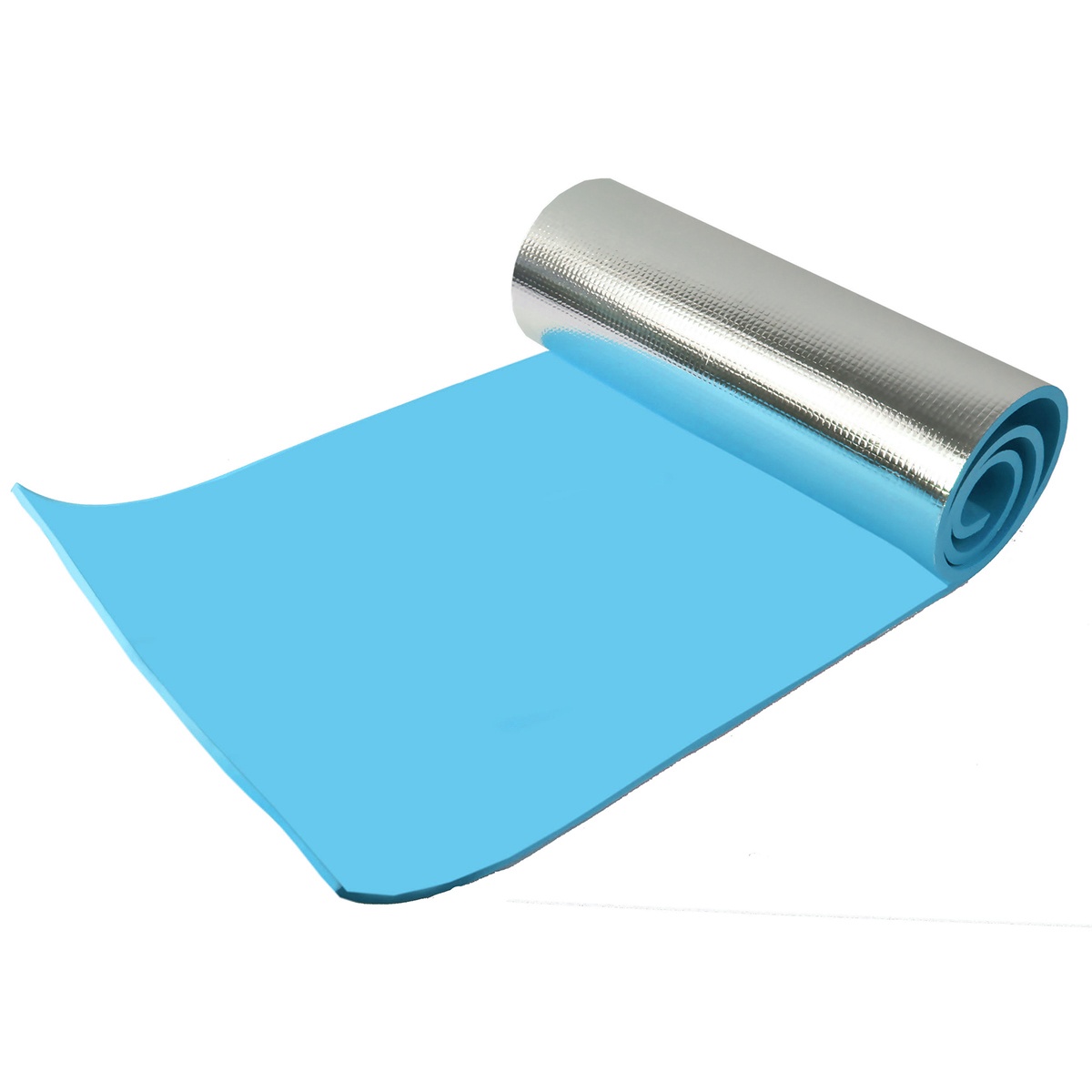 Karimatka s hladkým povrchem a spodní stranou z ALU fólie. Karimatka je vhodná pro camping, turistiku nebo jako podložka u vody či na piknik. Kombinace pěnového EVA materiálu a hliníkové vrstvy zaručuje pohodlí a zároveň chrání před chladem a vlhkem. Karimatku lze jednoduše srolovat a zajistit pomocí gumiček. Je lehká a snadno přenosná.