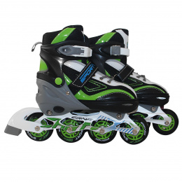 Kvalitní nastavitelné brusle značky Allright Bota je lehká a odolná s nastavitelnou poloměkkou PU skořepinou a PP výztuhami s ventilačním systémem. Velmi dobře sedí na noze. Technické parametry: - Podrážka: zesílený plast - Stélka: mikrovlákno pohlcující vlhkost, které se přizpůsobí tvaru nohy - 4 velikosti nastavitelné  - Ložiska A