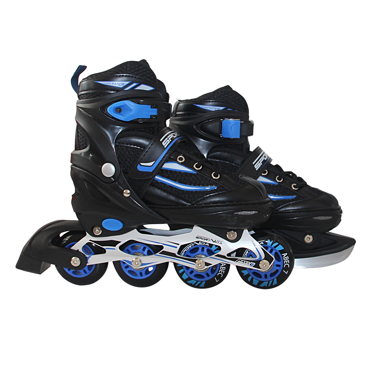 Nastavitelné kolečkové brusle značky Sportvida Kolečkové brusle mají čtyřstupňový systém nastavení velikosti boty, díky kterému tento model „poroste“ spolu s dětskou nohou. Model je vyroben z vysoce kvalitních materiálů (pevný hlinikový rám, ložiska Abec-7, pryžová kola), odvětrávaná bota s oky zajišťuje pohodlí při dlouhodobém používán