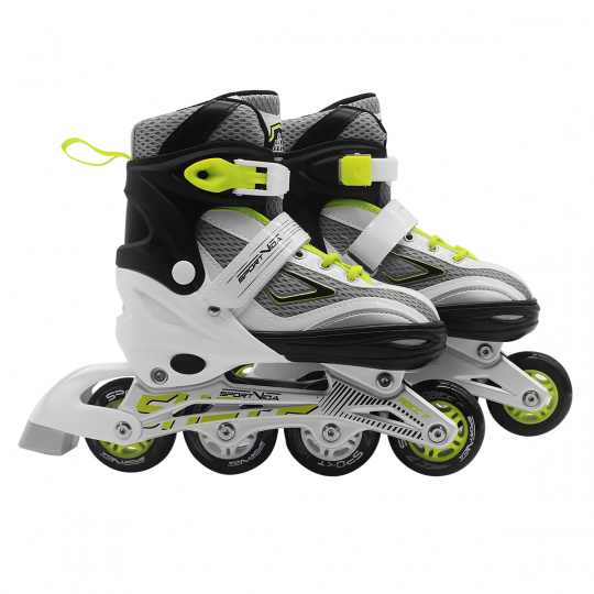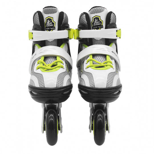 Model je vyroben z vysoce kvalitních materiálů (pevný hlinikový rám, ložiska Abec-7, pryžová kola), odvětrávaná bota s oky zajišťuje pohodlí při dlouhodobém používání, zatímco třístupňové zapínání (přezka, tkaničky a suchý zip) zajišťuje maximální bezpečnost během jízdy.