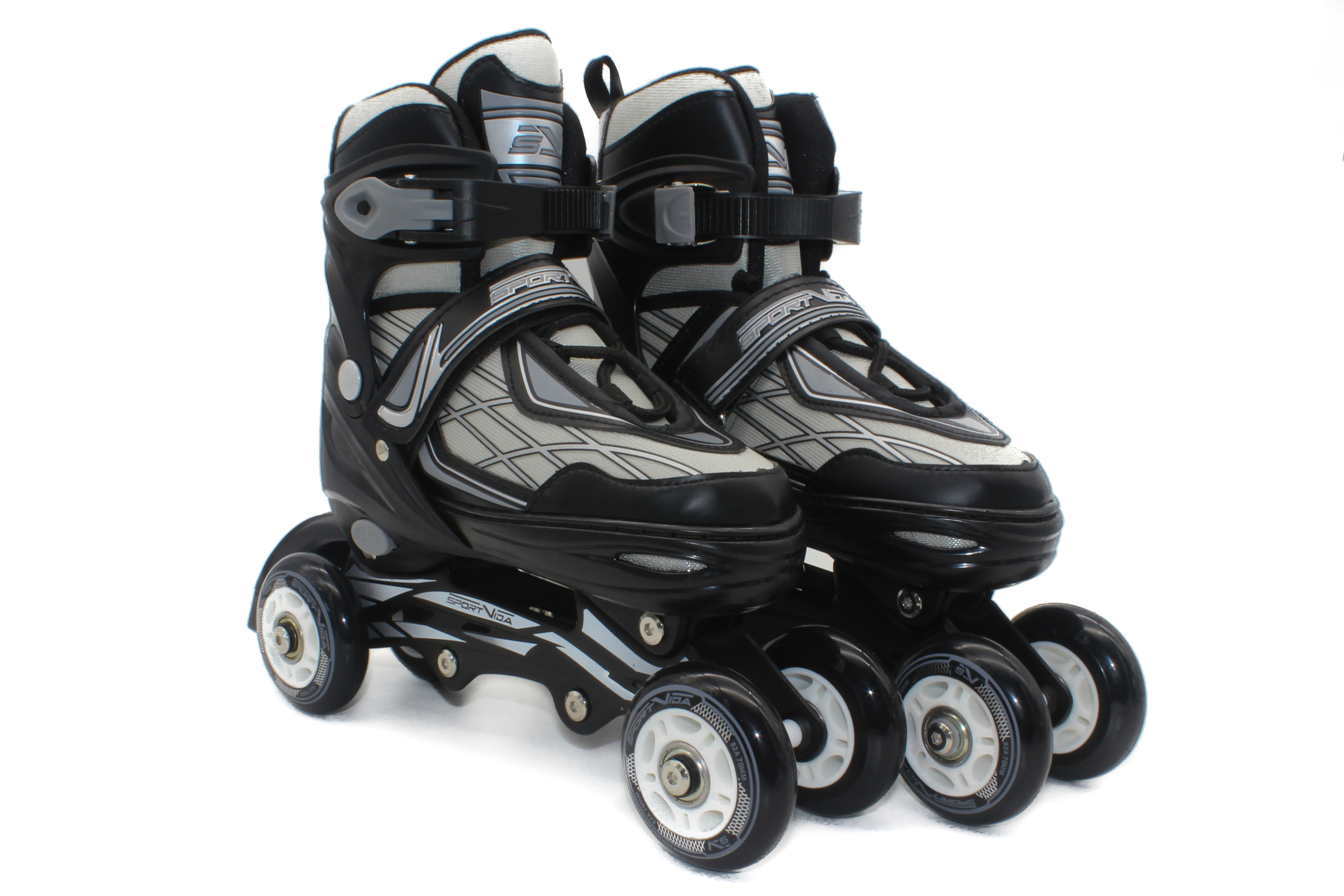 Brusle 4v1 Sportvida Kolečkové brusle s vyměnitelným zimním nožem a nastavitelnou velikostí. Ideální brusle pro celoroční využití. Zapínání na tkaničky, suchý zip a sponu zpevní kotník a zajistí pohodlnou jízdu. Hliníkový podvozek a kvalitní ložiska zaručují stabilitu. Z kolečkových bruslí lze výměnou koleček za nože udělat brusle lední.