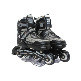 Kolečkové brusle s vyměnitelným zimním nožem a nastavitelnou velikostí. Ideální brusle pro celoroční využití. Zapínání na tkaničky, suchý zip a sponu zpevní kotník a zajistí pohodlnou jízdu. Hliníkový podvozek a kvalitní ložiska zaručují stabilitu. Z kolečkových bruslí lze výměnou koleček za nože udělat brusle lední. S těmito bruslemi si vychutnáte sportovní radovánky během letní i zimní sezóny.