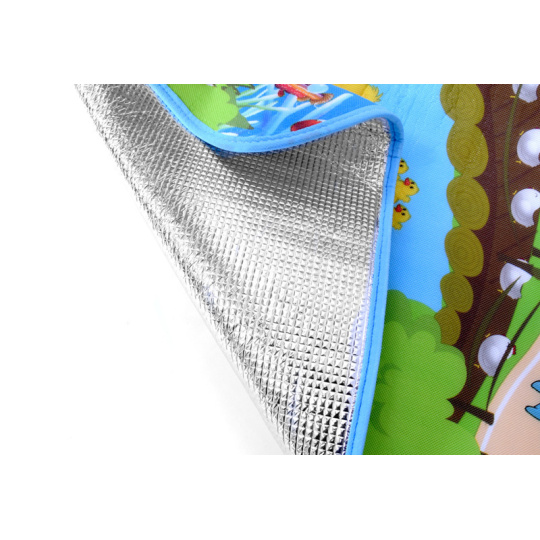 Vrchní vrstva je vyrobena ze snadno čistitelného materiálu EPE, který poskytuje odpružení, flexibilitu, tepelnou izolaci a odolnost proti vodě. Spodní vrstva deky je vyrobena z hliníkové fólie, která zajišťuje velmi dobrou izolaci od země a odolnost proti vodě (lze použít i na mokré trávě). Snadno se přenáší a skladuje díky praktické tašce. Ideální pro děti.