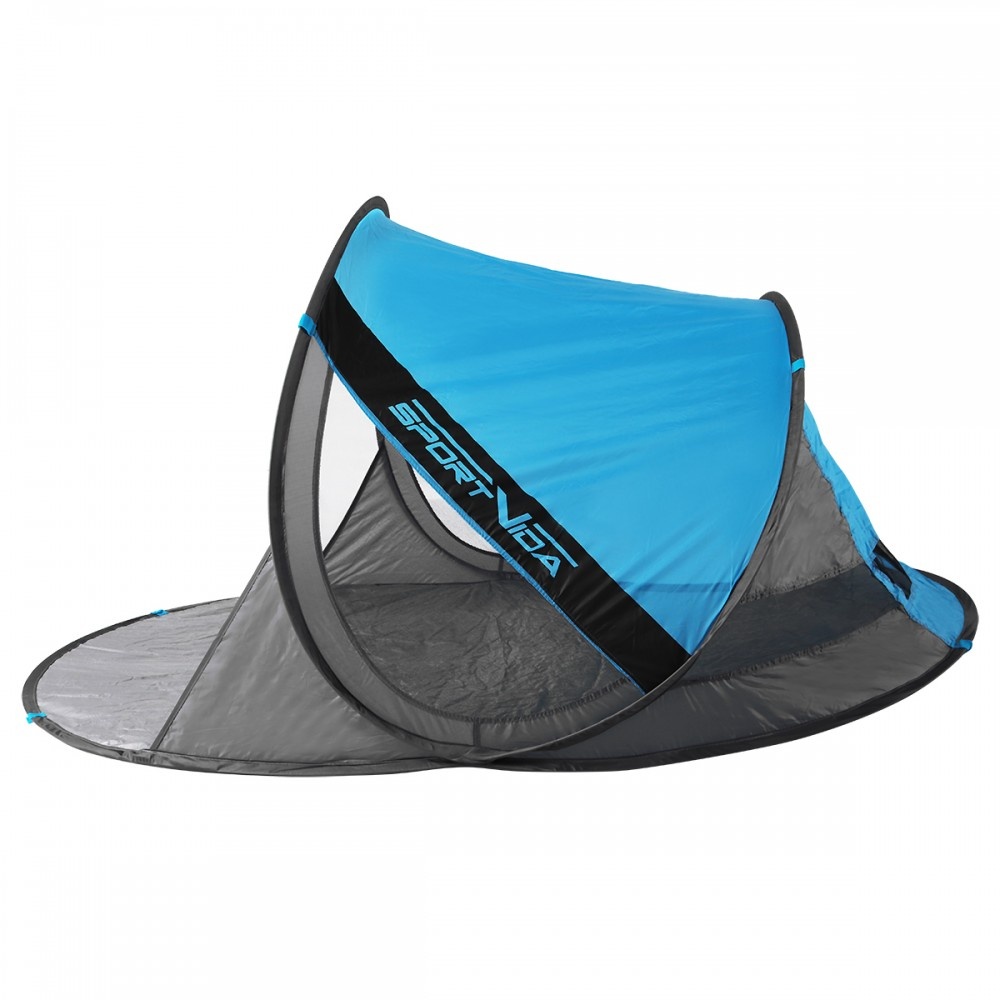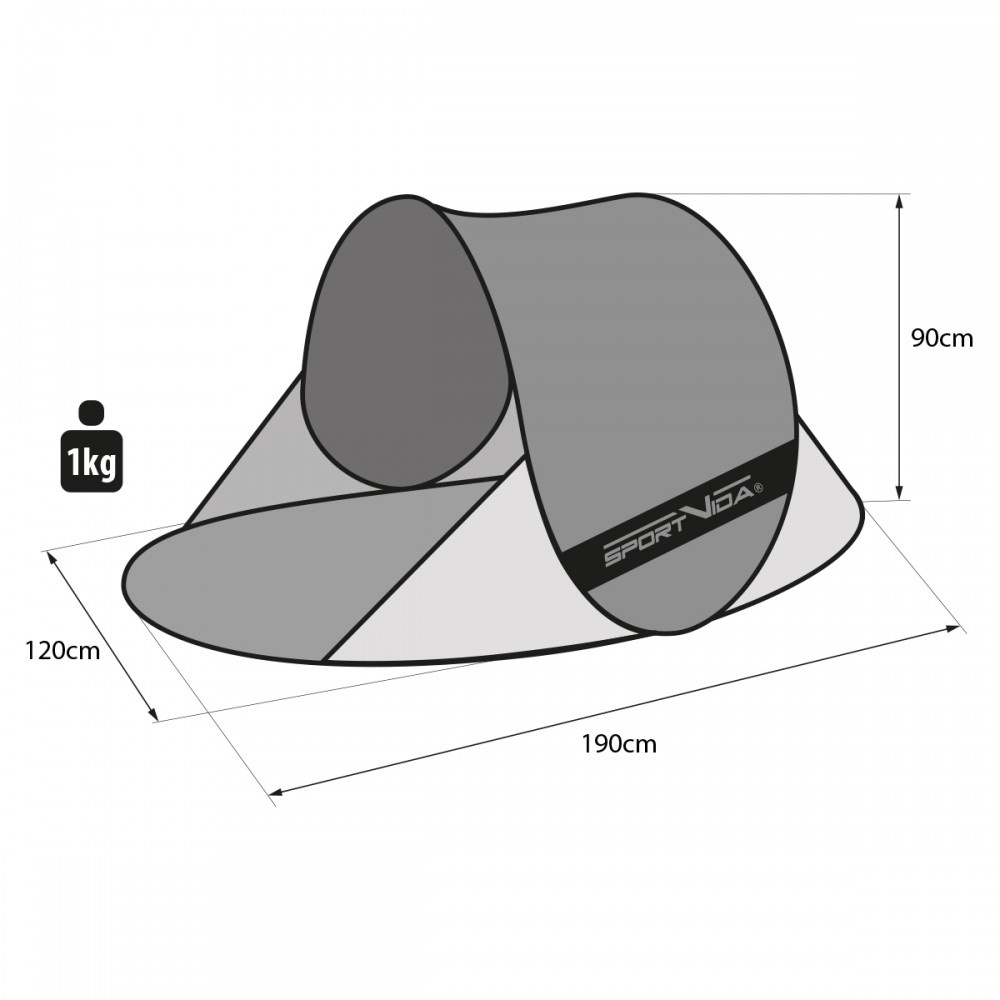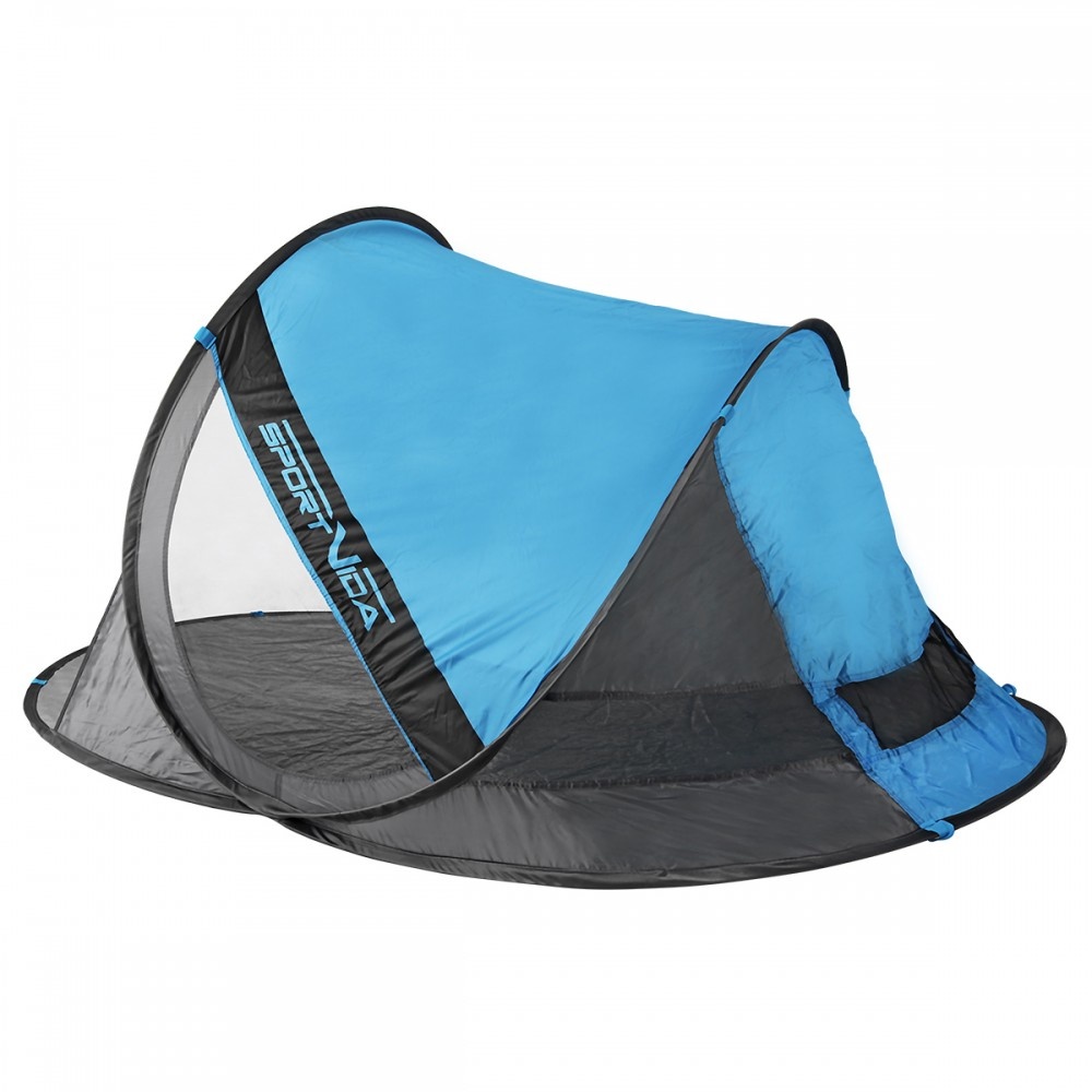 Samorozkládací stan má dostatek místa pro tři osoby a je vyrobena z materiálu, který je odolný vůči vodě a UV záření.