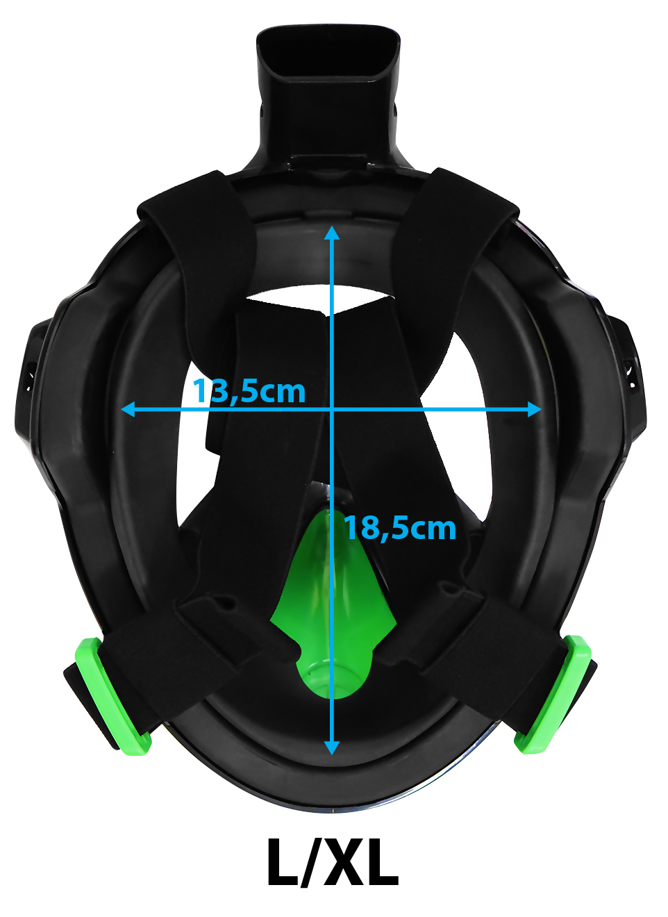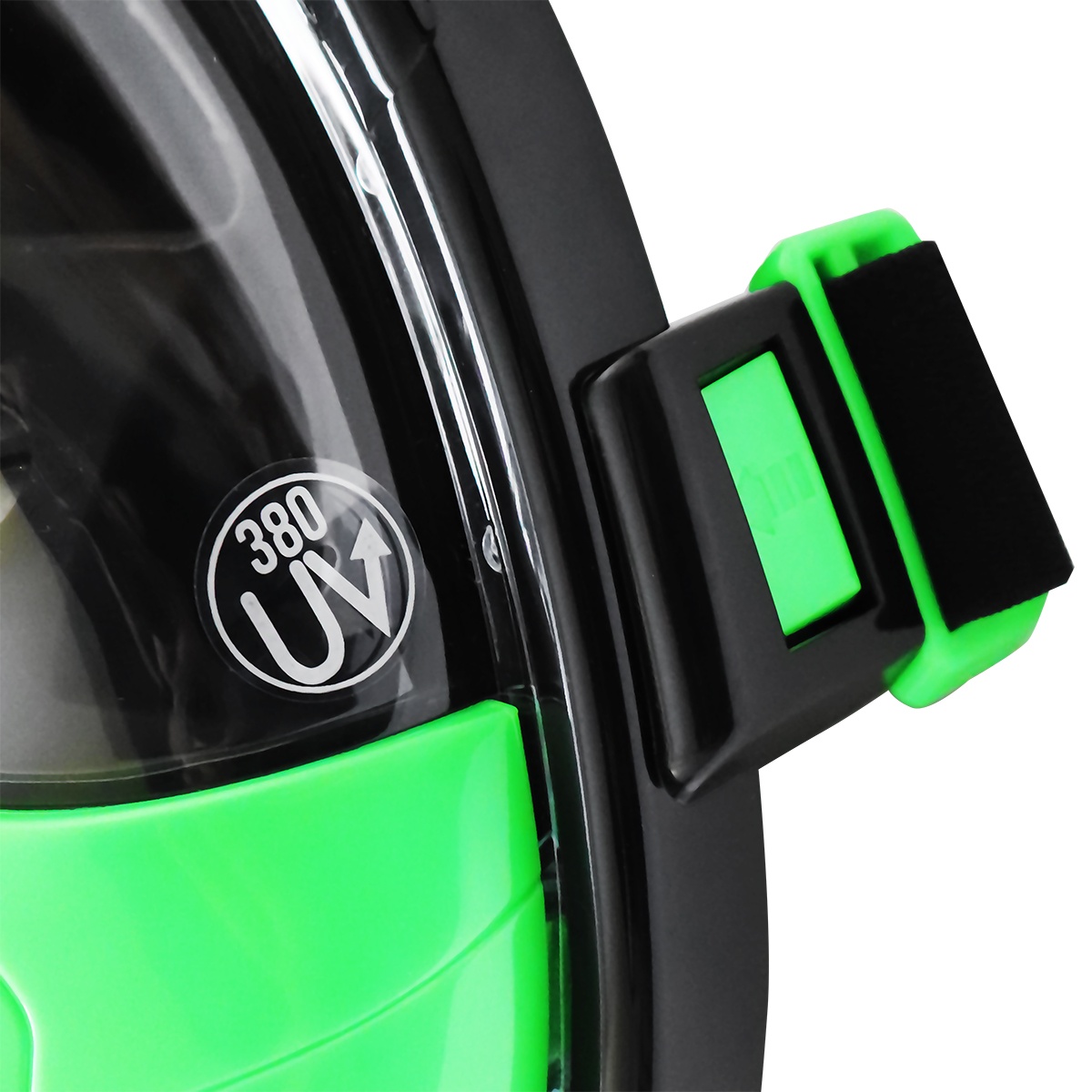 Maska byla vytvořena tak, aby zajistila co největší pohodlí a široký pozorovací úhel 180 stupňů. Odepínací šnorchl se suchým horním ventilem zabraňuje proniknutí vody do masky. Součástí balení je držák pro připevnění sportovní kamery. Kombinace TPE (ekologického) materiálu s tvrzeným sklem zajišťuje dostatečnou těsnost, odolnost a také skvělou viditelnost. Nemusíte se bát zamlžení, protože má maska speciální anti-fog systém, který tomu zabrání. Další výhodou je UV filtr 380, který chrání obličej a oči před slunečním zářením.