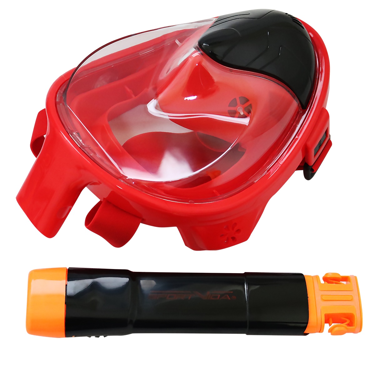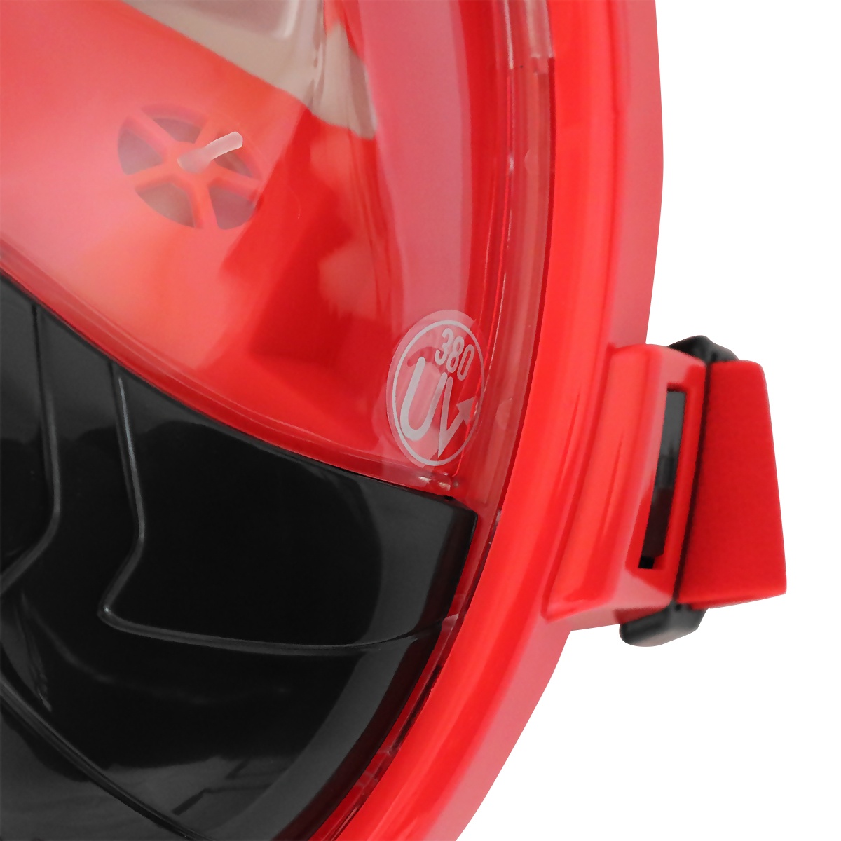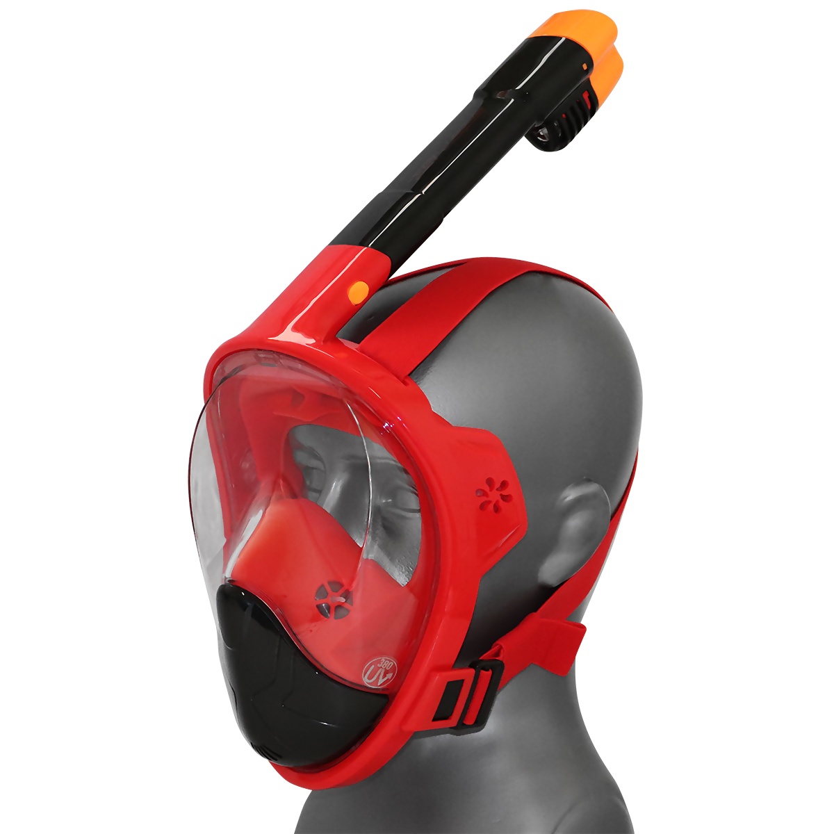Maska byla vytvořena tak, aby zajistila co největší pohodlí a široký pozorovací úhel 180 stupňů. Odepínací šnorchl se suchým horním ventilem zabraňuje proniknutí vody do masky. Součástí balení je držák pro připevnění sportovní kamery. Kombinace TPE (ekologického) materiálu s tvrzeným sklem zajišťuje dostatečnou těsnost, odolnost a také skvělou viditelnost. Nemusíte se bát zamlžení, protože má maska speciální anti-fog systém, který tomu zabrání. Další výhodou je UV filtr 380, který chrání obličej a oči před slunečním zářením.