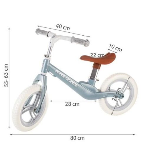 SPECIFIKACE - barvy: růžová, modrá; materiál: hliník s hořčíkem, PU, guma; materiál kol: pěna EVA; nastavení sedla: 35-40 cm; nastavení volantu: 55-63 cm; průměr kruhu: 30 cm; rozměry (délka / šířka / výška): 90/40/62 cm váha: 2,5 kg; hmotnost v balení: 4 kg