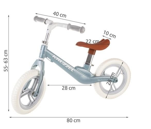 SPECIFIKACE - barvy: růžová, modrá; materiál: hliník s hořčíkem, PU, guma; materiál kol: pěna EVA; nastavení sedla: 35-40 cm; nastavení volantu: 55-63 cm; průměr kruhu: 30 cm; rozměry (délka / šířka / výška): 90/40/62 cm váha: 2,5 kg; hmotnost v balení: 4 kg