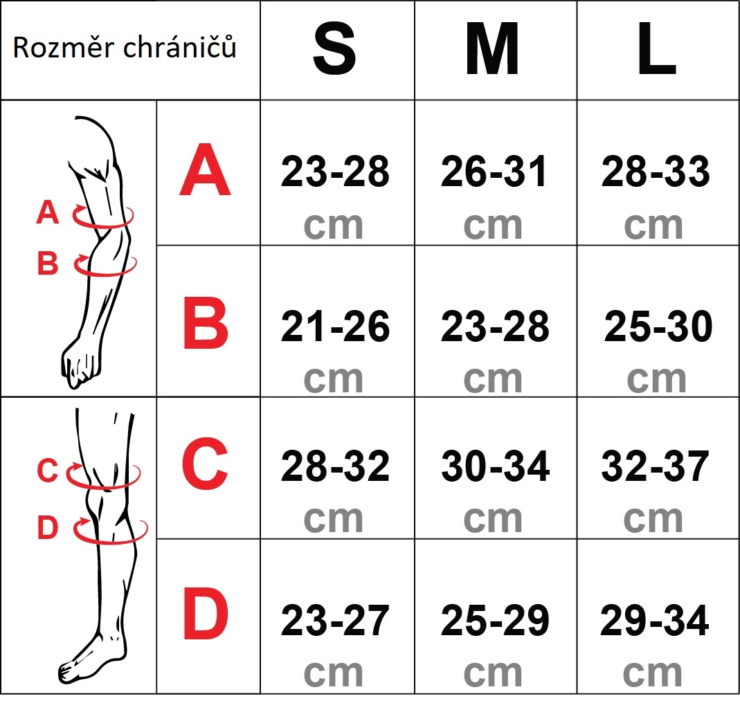 Sada obsahuje 1 pár chráničů kolen, loktů a zápěstí.
