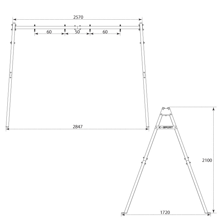 celkové rozměry konstrukce: 2847x1720x2100 mm