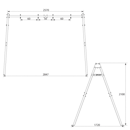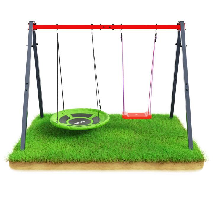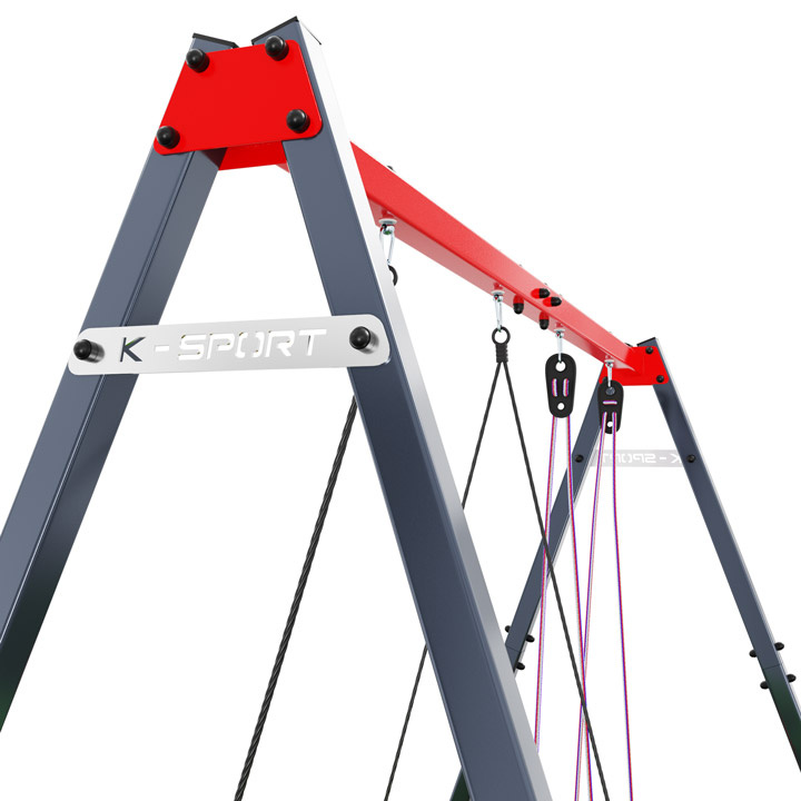 Horní část rámu spolu s částí boční vytváří tupý úhel, který zlepšuje stabilitu houpačky při používání.