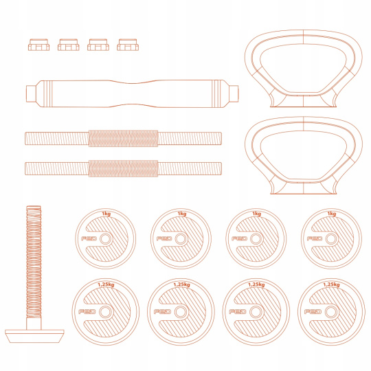 Skvělá možnost pro lidi, kteří chtějí trénovat doma s omezeným prostorem. Sada byla navržena tak, aby vám poskytla maximální využití, které činky a kettlebell nabízejí. Nyní můžete svoji postavu formovat cvičením doma pomocí různých náčiní a možností regulace závaží.