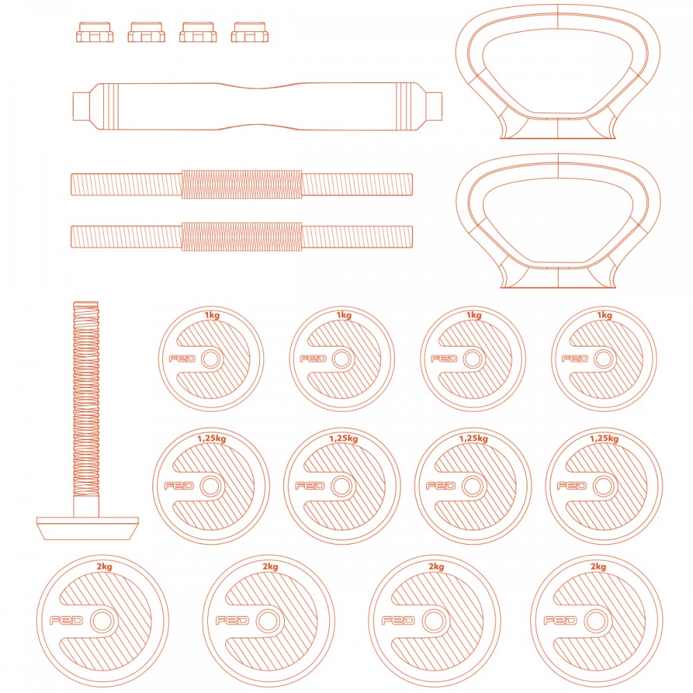 Skvělá možnost pro lidi, kteří chtějí trénovat doma s omezeným prostorem. Sada byla navržena tak, aby vám poskytla maximální využití, které činky a kettlebell nabízejí. Nyní můžete svoji postavu formovat cvičením doma pomocí různých náčiní a možností regulace závaží.