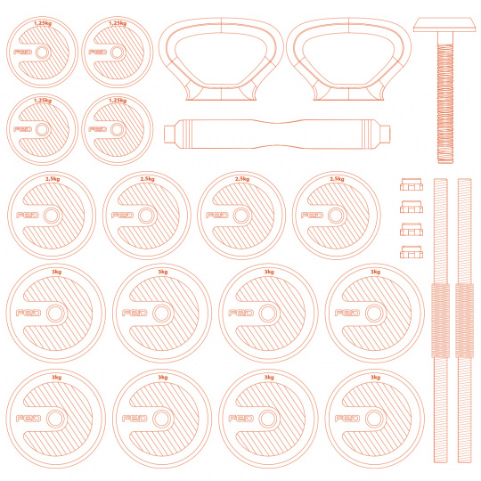 Skvělá možnost pro lidi, kteří chtějí trénovat doma s omezeným prostorem. Sada byla navržena tak, aby vám poskytla maximální využití, které činky a kettlebell nabízejí. Nyní můžete svoji postavu formovat cvičením doma pomocí různých náčiní a možností regulace závaží.