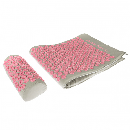 Set masážní polštářek + podložka na akupresuru Sportvida šedo-růžová