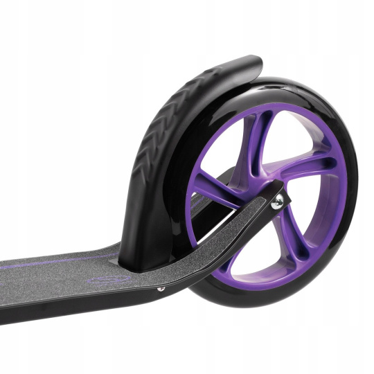 Koloběžka je vyrobena z materiálů nejvyšší kvality. Koloběžka má kola o velikosti 200 mm, zadní kolo je zároveň vybaveno nožní brzdou, která zároveň slouží jako blatník a je vybaven odrazkou, která zajišťuje větší viditelnost uživatele a tím i větší bezpečnost.