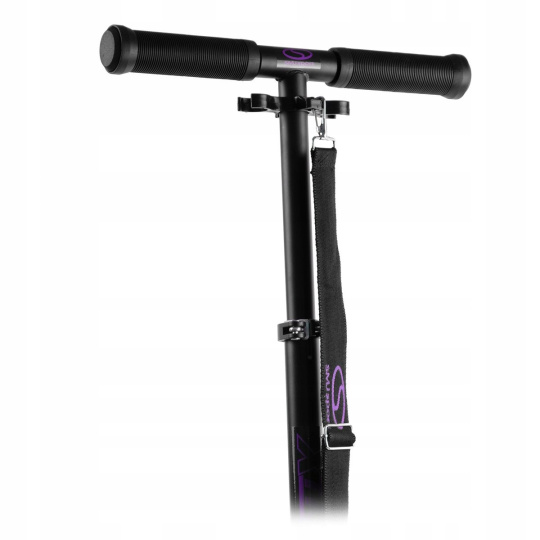 Součástí balení je také pásek na snadnější přenášení koloběžky. Koloběžka má rovněž přední blatník. K lepšímu odstavení koloběžky pomáhá praktický boční stojan.