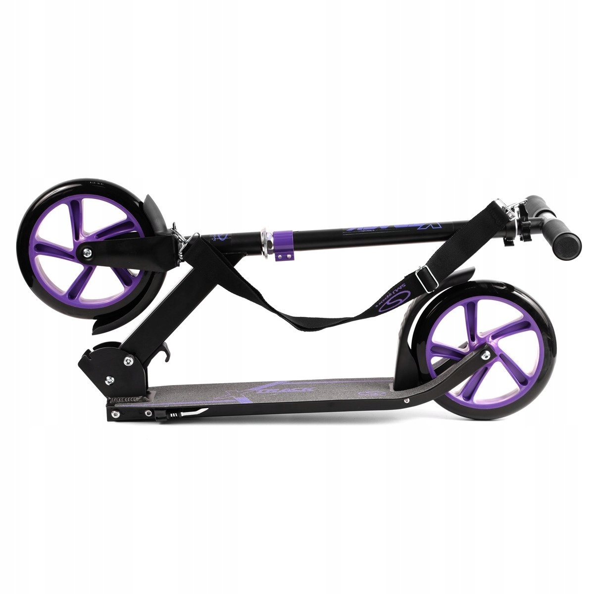 Součástí balení je také pásek na snadnější přenášení koloběžky. Koloběžka má rovněž přední blatník. K lepšímu odstavení koloběžky pomáhá praktický boční stojan.