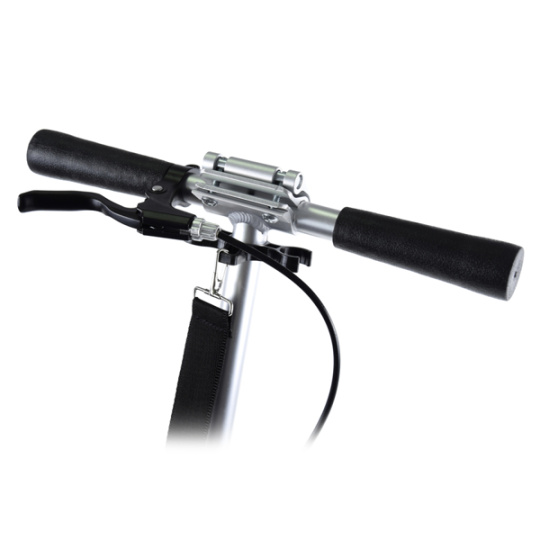 Součástí balení je také pásek na snadnější přenášení koloběžky. Koloběžka má rovněž boční stojánek pro snadnější parkování.