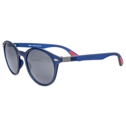 Modré sluneční brýle značky Laceto BELLA s transparentním rámečkem a červenými detaily, vhodné pro běžné nošení. Jejich skla jsou kouřová.