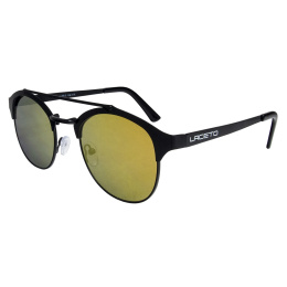 Sluneční brýle mají černý kovový rámeček a oranžová REVO skla.