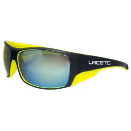 Černé matné sluneční brýle značky Laceto CARL se žlutými detaily, které se hodí jak na sport, tak na běžné nošení. Jejich skla jsou žlutá REVO. Kategorie podle stupně protisluneční ochrany je na třetí úrovni a použité filtry jsou 100? UVA,UVB a UVC.