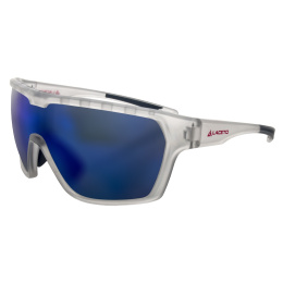 Transparentní sluneční brýle značky Laceto FALCO WHITE s černými detaily, vhodné pro sport i běžné nošení. Jsou vybaveny REVO modrými skly a protiskluzovými nosníky a koncovkami. Kategorie podle stupně protisluneční ochrany je na třetí úrovni a použité filtry jsou 100? UVA,UVB a UVC.