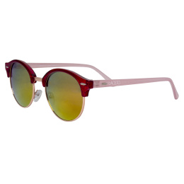 Červené sluneční brýle značky Laceto RONA s transparentním rámečkem a růžovými detaily, vhodné pro běžné nošení. Jejich skla jsou červené REVO.