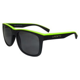 Černé sluneční brýle Laceto RONALD pro běžné nošení. Brýle mají matný černý rámeček se zelenými detaily a kouřová skla s kategorií filtru 3, takže propustnost světla je 8-18%. Použité filtry jsou 100% UVA,UVB a UVC.