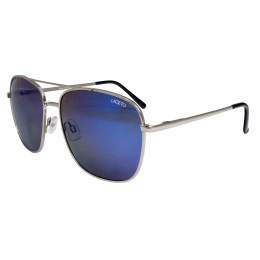 Brýle VICTORIA mají stříbrný rámeček s černými koncovkami a modrá REVO skla.