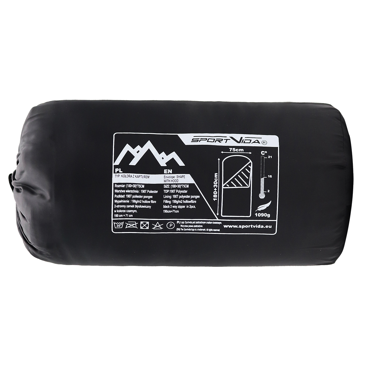 Spacák značky Sportvida kombinuje výhody přikrývky a spacáku ve tvaru mumie, díky čehož velmi dobře udržuje teplo. Díky zipu, který je po celé délce, můžete ze spacáku snadno udělat přikrývku. Výrobek je vyroben z materiálu HOLLOW FIBER, který udržuje teplo uvnitř a zároveň odvádí vlhkost pryč. Suchý zip na hlavní části zabraňuje rozepnutí zipu během spánku.