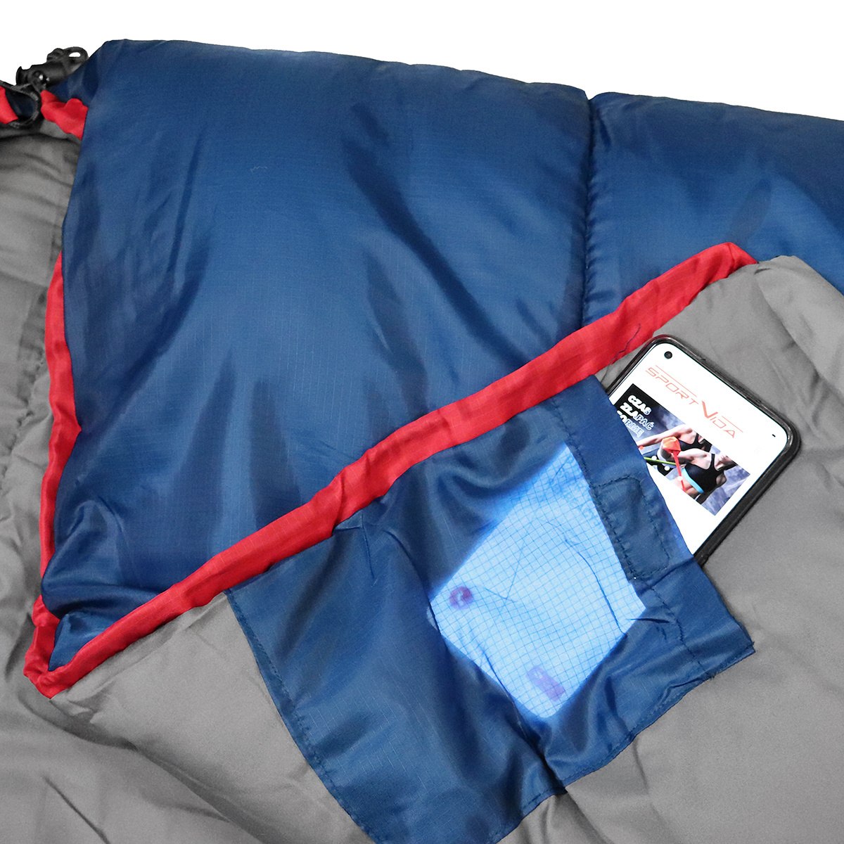 Spacák značky Sportvida je vyroben z vysoce kvalitního materiálu RIPSTOP se zvýšenou odolností proti mechanickému poškození a kombinuje výhody přikrývky a spacáku ve tvaru mumie. Pevná šířka spacáku a kapuce zaručuje maximální pohodlí a udržení teploty během používání. Výrobek má funkci WINDSTOP. Výplní používanou v tomto spacáku je vlákno HOLLOW FIBER s hmotností 250 g / m2, které má velmi vysoké tepelné parametry. Výhodou tohoto vlákna je zadržování tepla uvnitř spacáku a transport vlhkosti ven ze spacáku.