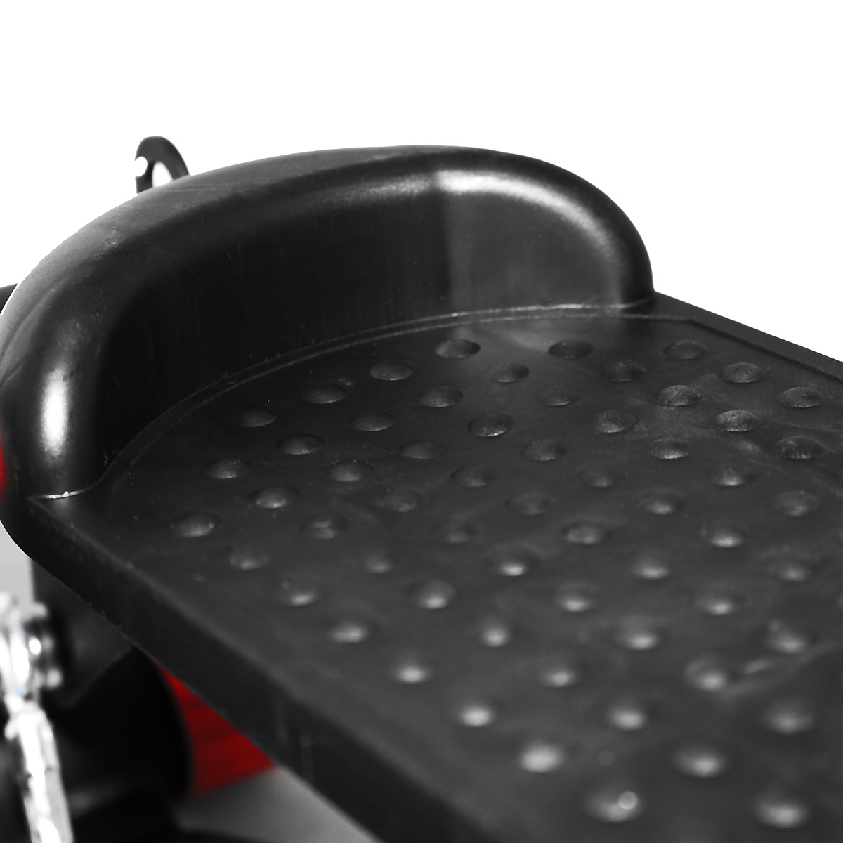 Pevný kovový rám a protiskluzové gumové nášlapy zajišťují stabilitu a bezpečnost při cvičení. Displej zobrazuje všechna důležitá data, jako je spotřeba kalorií, délka tréninku a počet opakování a další. Díky své malé velikosti lze stepper po tréninku uložit prostorově úsporným způsobem.