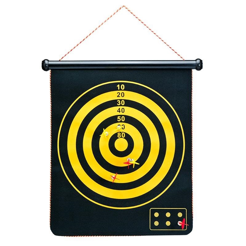 Terč pro rekreační hry a skvělou zábavu venku nebo uvnitř. Zvyšuje atraktivitu času stráveného s rodinou a nebo přáteli. Balení obsahuje zatahovací oboustranný magnetický terč a šest magnetických šipek. Schopnost srolovat terč usnadňuje skladování a přepravu.